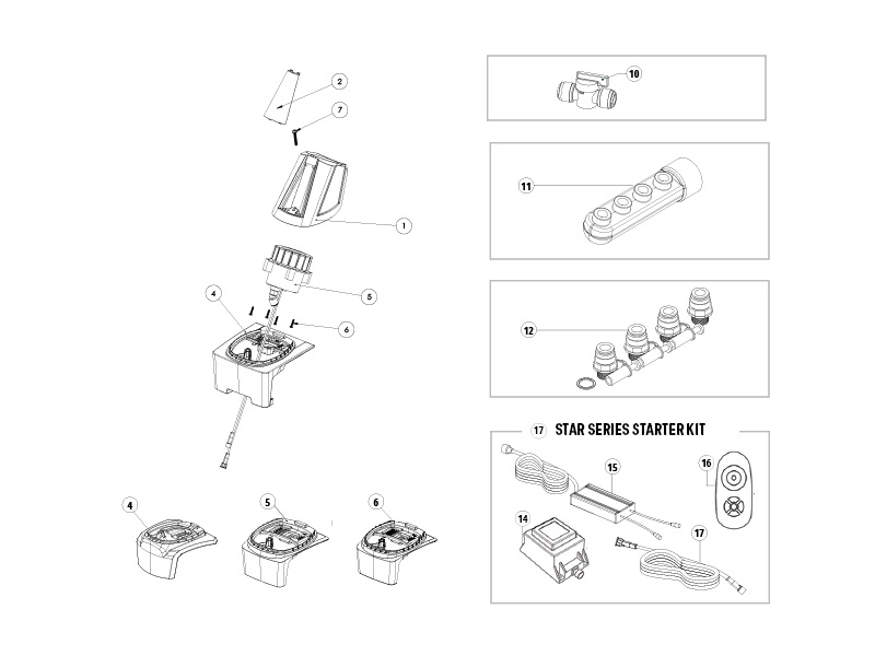 - Includes2x-starjet backlit (top ledge cover, flow valve, cap & screw), 1x-starjet 4-way manifold kit (4 way manifold, tube connector, seal and connector plug), 1x-starserie starter kit 40 watts (controller, adaptor, cable and remote control), 2x-carvin ester PU t